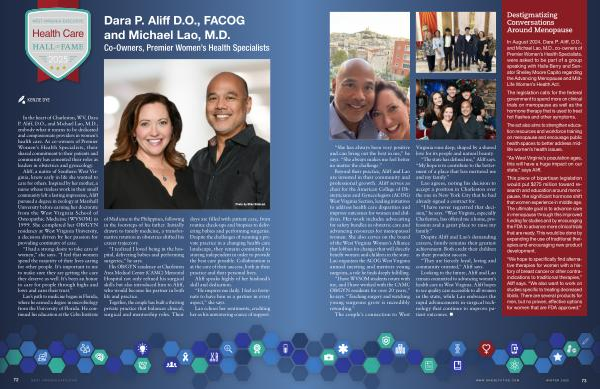 In the heart of Charleston , WV , Dara P . Aliff , D . O ., and Michael Lao , M . D ., embody what it means to be dedicated and compassionate providers in women ’ s health care . As co-owners of Premier Women ’ s Health Specialists , their shared commitment to their patients and community has cemented their roles as leaders in obstetrics and gynecology .