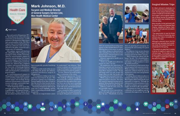 Dr . Mark Johnson ’ s dedication to service extends far beyond Morgantown . He has always believed in the power of medicine to transform lives , but it wasn ’ t until a surgical mission trip to Brazil during his residency that his belief was solidified into a lifelong calling .