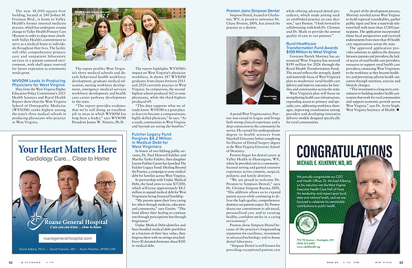 “ This investment is a long-term commitment to building modern health care systems that work for rural communities and support economic growth across West Virginia,” says Dr. Arvin Singh, West Virginia Secretary of Health. •