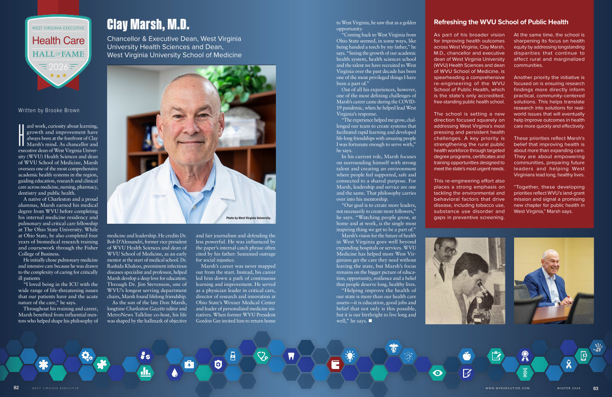 Marsh’ s vision for the future of health in West Virginia goes well beyond expanding hospitals or services. WVU Medicine has helped more West Virginians get the care they need without leaving the state, but Marsh’ s focus remains on the bigger picture of education, opportunity, resilience and a belief that people deserve long, healthy lives.
