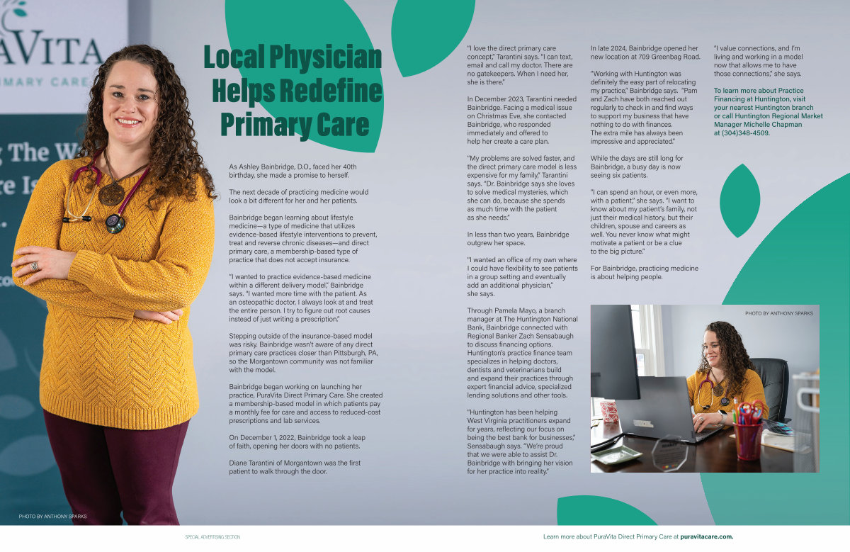 “ Huntington has been helping West Virginia practitioners expand for years, reflecting our focus on being the best bank for businesses,” Sensabaugh says.“ We’ re proud that we were able to assist Dr. Bainbridge with bringing her vision for her practice into reality.”