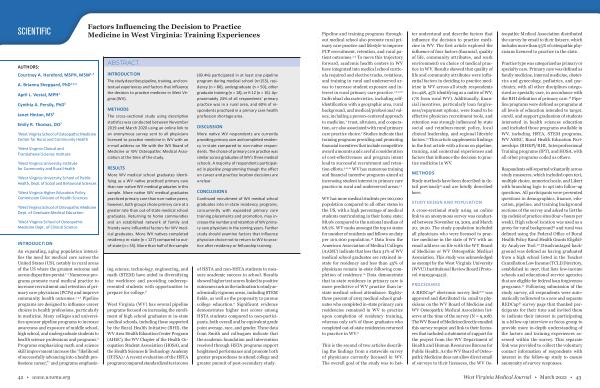 INTRODUCTION The study describes pipeline , training , and contextual experiences and factors that influence the decision to practice medicine in West Virginia ( WV ).
