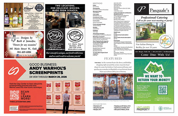 West Virginia South magazine is not responsible for unsolicited submissions. Reproduction or use of editorial or graphic content in any manner without permission is prohibited. Copyright 2023 by The Register-Herald and Bluefield Daily Telegraph. All rights reserved.