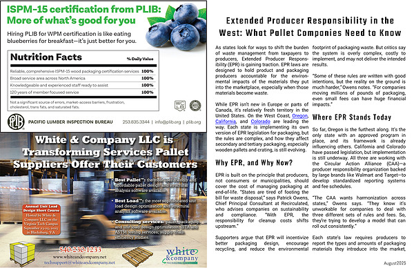 While EPR isn’t new in Europe or parts of Canada, it’s relatively fresh territory in the United States. On the West Coast, Oregon, California, and Colorado are leading the way. Each state is implementing its own version of EPR legislation for packaging, but the rules are complex, and how they affect secondary and tertiary packaging, especially wooden pallets and crating, is still evolving.