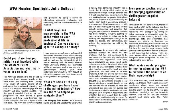 I have become a much more well-rounded, well-versed individual in the industry largely due to the WPA’s speaker programs, panels, and as well as the camaraderie at the annual meeting. With the newly released Pallet University, sharing that knowledge within my company and to my peers is a game-changer. Having your team understand the “what, how, why” through an interactive program has been instrumental in the growth of the company.