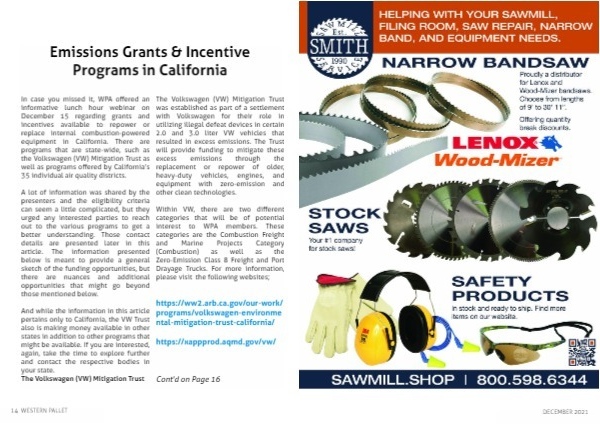 In case you missed it, WPA offered an informative lunch hour webinar on December 15 regarding grants and incentives available to repower or replace internal combustion-powered equipment in California. There are programs that are state-wide, such as the Volkswagen (VW) Mitigation Trust as well as programs offered by California’s 35 individual air quality districts.