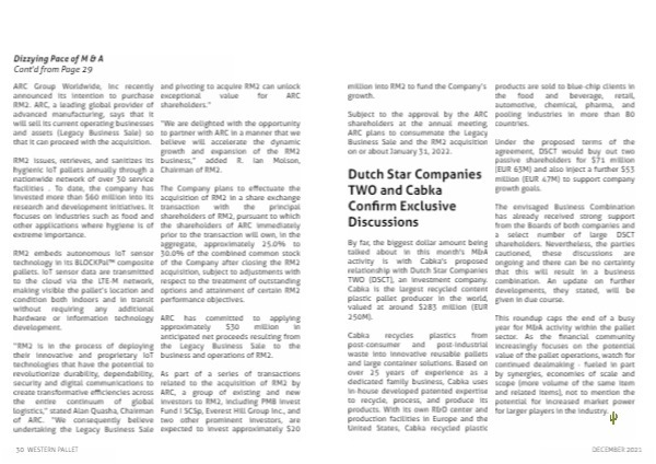 “RM2 is in the process of deploying their innovative and proprietary IoT technologies that have the potential to revolutionize durability, dependability, security and digital communications to create transformative efficiencies across the entire continuum of global logistics,” stated Alan Quasha, Chairman of ARC. “We consequently believe undertaking the Legacy Business Sale and pivoting to acquire RM2 can unlock exceptional value for ARC shareholders.”