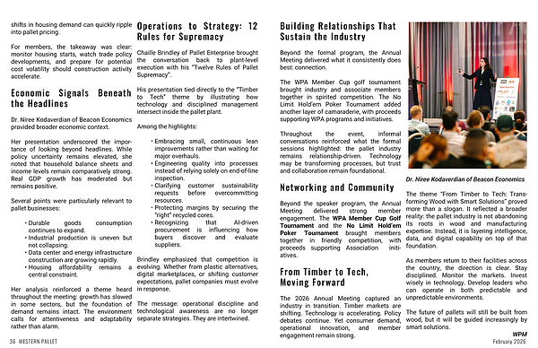 His presentation tied directly to the “Timber to Tech” theme by illustrating how technology and disciplined management intersect inside the pallet plant.