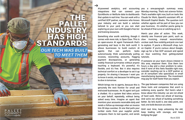 Which brings me to agents, because this is genuinely the next frontier for small and mid-sized businesses. An AI agent isn't just a chatbot. It's a system that takes actions on your behalf, repeatedly, without being asked every time. Imagine an agent that monitors your accounts receivable daily and sends a follow-up message when an invoice hits 30 days overdue. Or one that pulls your lumber costs from your supplier portal, compares them to last quarter, and sends you a one-paragraph summary every Monday morning. That's not science fiction. That's available right now, built on tools like Claude for Work, OpenAI's assistant API, or Microsoft Copilot Studio. The question isn't whether agents will be part of how you run your business; it's whether you're going to be ahead of that curve or catching up to it.