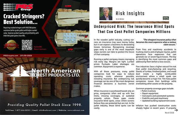 In the wooden pallet industry, cutting cor- ners on insurance may save money today, but it can expose a business to devastating losses tomorrow. Recognizing coverage gaps early is one of the most important steps owners can take to protect the future of their company.