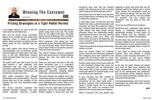 In the end, the pallet industry has always been built on hard work, reliability, and strong relationships. Price will always be part of the conversation. But companies that consistently deliver reliability, service, and trust build something stronger than a transactional relationship.