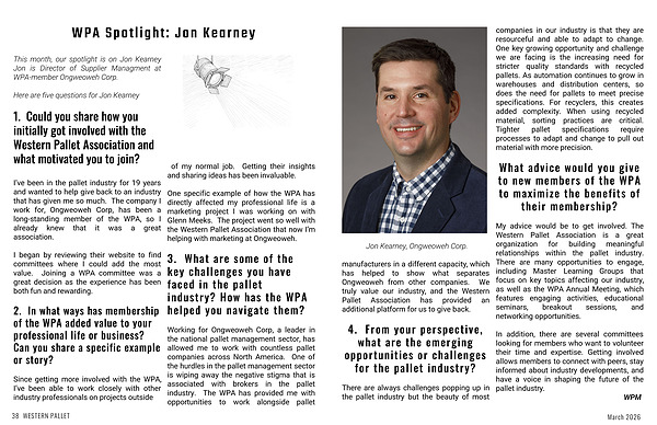 Working for Ongweoweh Corp, a leader in the national pallet management sector, has allowed me to work with countless pallet companies across North America. One of the hurdles in the pallet management sector is wiping away the negative stigma that is associated with brokers in the pallet industry. The WPA has provided me with opportunities to work alongside pallet manufacturers in a different capacity, which has helped to show what separates Ongweoweh from other companies. We truly value our industry, and the Western Pallet Association has provided an additional platform for us to give back.