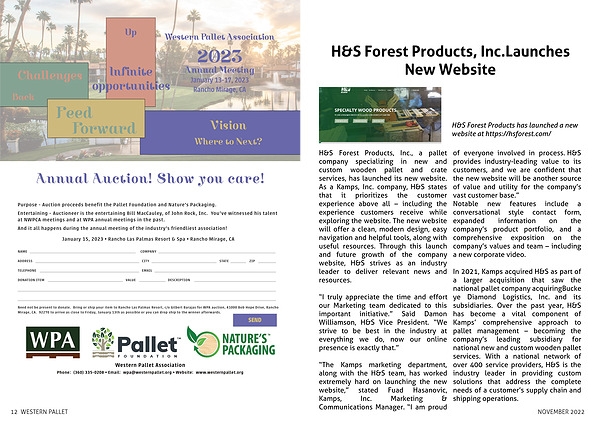 H&S Forest Products, Inc., a pallet company specializing in new and custom wooden pallet and crate services, has launched its new website. As a Kamps, Inc. company, H&S states that it prioritizes the customer experience above all – including the experience customers receive while exploring the website. The new website will offer a clean, modern design, easy navigation and helpful tools, along with useful resources. Through this launch and future growth of the company website, H&S strives as an industry leader to deliver relevant news and resources.