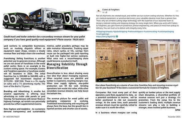 In a business where margins can swing quickly as lumber prices or the next supply chain disruption, a diversified portfolio of revenue sources isn’t just a strategy: it’s protection. From the cutup line to the customer’s loading dock, multiple revenue streams can play a role in building a stronger, more resilient pallet business.