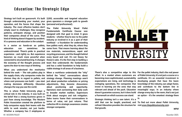 For the pallet industry, that’s the real power of Pallet University. It’s not just a course or a certificate. It’s an essential investment in developing people that have the basic knowledge of the industry, can adapt faster, and contribute to the bottom line in meaningful ways. In an industry where change every day is the norm, that’s not just an option - it’s the smartest strategy there is.