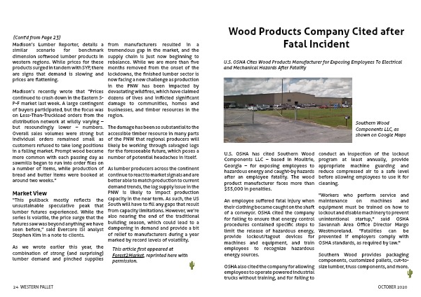 U.S. OSHA has cited Southern Wood Components LLC – based in Moultrie, Georgia – for exposing employees to hazardous energy and caught-by hazards after an employee fatality. The wood product manufacturer faces more than $55,000 in penalties.