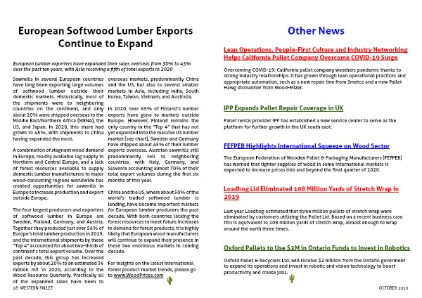 A combination of stagnant wood demand in Europe, readily available log supply in Northern and Central Europe, and a lack of forest resources available to supply domestic lumber manufacturers in major wood-consuming regions worldwide has created opportunities for sawmills in Europe to increase production and export outside Europe.