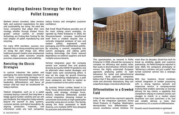 For many WPA members, success now depends less on doing everything and more on doing the right things well. While traditional growth models once emphasized scale, today’s pallet economy rewards precision, responsiveness, and credibility.