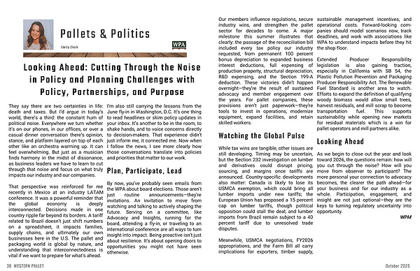 That perspective was reinforced for me recently in Mexico at an industry LATAM conference. It was a powerful reminder that the global economy is deeply interconnected. Decisions made in one country ripple far beyond its borders. A tariff related to Brazil doesn’t just shift numbers on a spreadsheet, it impacts families, supply chains, and ultimately our own businesses here in the U.S. The pallet and packaging world is global by nature, and understanding that interconnectedness is vital if we want to prepare for what’s ahead.