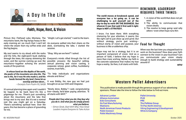 When was the last time you stepped back to work on the business? How does your faith connect to the vision in your business? Can you communicate your vision clearly enough to build strategy and sustainability around it?