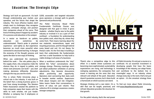 For the pallet industry, that’s the real power of Pallet University. It’s not just a course or a certificate. It’s an essential investment in developing people that have the basic knowledge of the industry, can adapt faster, and contribute to the bottom line in meaningful ways. In an industry where change every day is the norm, that’s not just an option - it’s the smartest strategy there is.