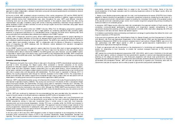comparative analysis but also enabled them to adapt to the‘ in-country ' FFA context. Some of the key recommendations of the Nepal evaluation and the continuing responsive actions of the Nepal country office are described below.