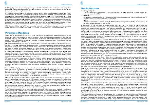 malnutrition. Since WFP did not undertake outcome monitoring as a result of insufficient funds received in 2016, it