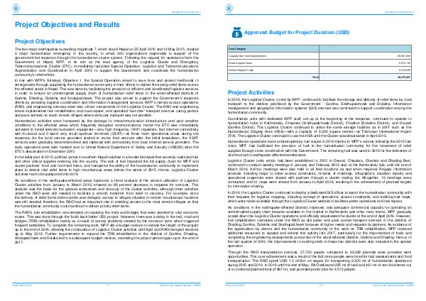 plans to deliver vital relief items to high mountainous areas before the winter of 2015. Hence, Logistics Cluster