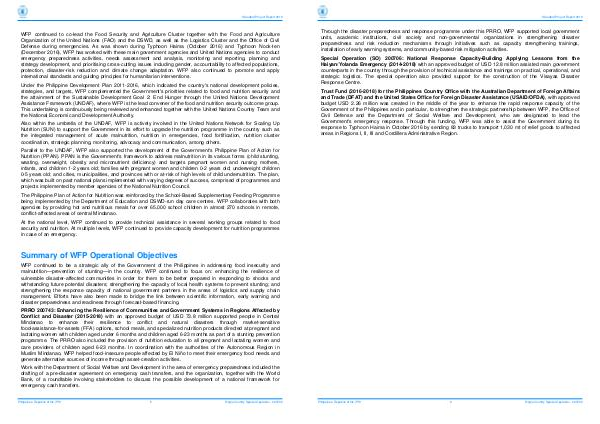 Trust Fund( 2016-2018) for the Philippines Country Office with the Australian Department of Foreign Affairs and Trade( DFAT) and the United States Office for Foreign Disaster Assistance( USAID / OFDA), with approved budget USD 2.26 million was created in the middle of the year to enhance the rapid response capacity of the Government of the Philippines and in particular, to strengthen the strategic partnership between WFP, the Office of Civil Defense and the Department of Social Welfare and Development, who are designated to lead the Government ' s emergency response. Through this funding, WFP was able to assist the Government during its response to Typhoon Haima in October 2016 by sending 83 trucks to transport 1,030 mt of relief goods to affected areas in Regions I, II, III and Cordillera Administrative Region.
