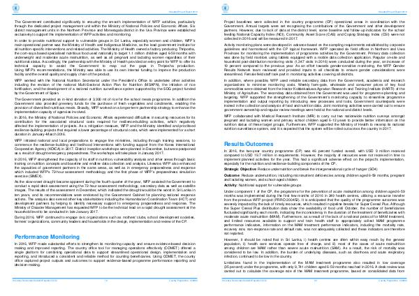 However, it should be noted that in Sri Lanka, i) health centres are often within easy reach by the general population, ii) health care services operate free of charge, and iii) most of the cases of acute malnutrition among children are MAM rather than severe acute malnutrition( SAM). As a result, the risk of mortality was considered to be low. In addition, the burden of underlying diseases, such as diarrhoea and acute respiratory infection, continued to be low in the country.