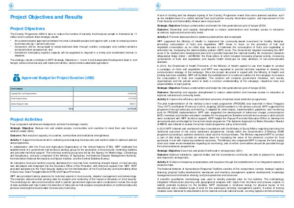 The Country Programme 200914 aims to reduce the number of severely food-insecure people in Indonesia by 11 million and to achieve three strategic results: