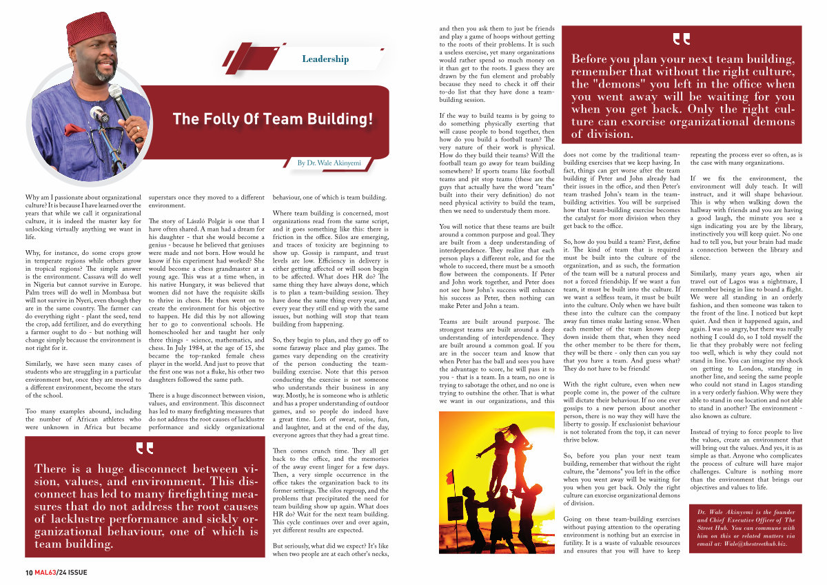 Going on these team-building exercises without paying attention to the operating environment is nothing but an exercise in futility. It is a waste of valuable resources and ensures that you will have to keep