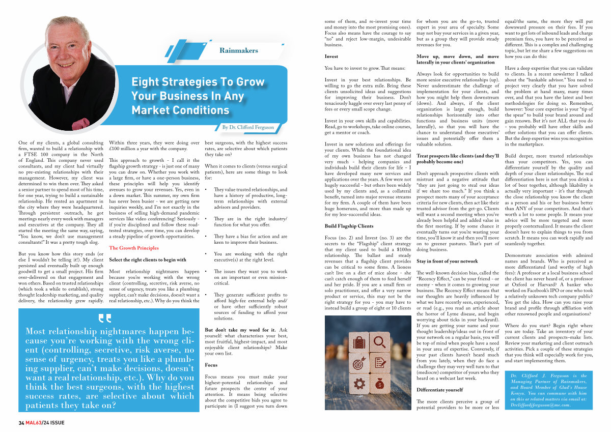 Dr. Clifford J. Ferguson is the Managing Partner of Rainmakers, and Board Member of Glad’ s House Kenya. You can commune with him on this or related matters via email at: Drcliffordjferguson @ me. com.
