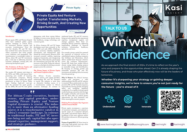 traditional banks, PE and VC investors bring not only capital but also operational expertise, management support, and strategic guidance. These firms are reshaping African industries, addressing longstanding challenges in financial inclusion, infrastructure, healthcare, agriculture, and more.