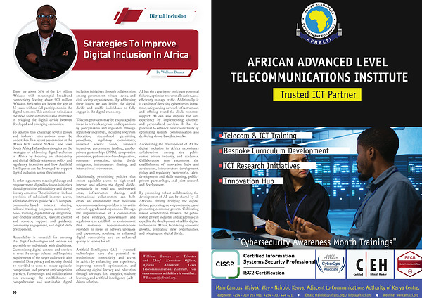 To address this challenge several policy and industry interventions must be undertaken. In a recent presentation at the Africa Tech Festival 2024 in Cape Town South Africa I shared my thoughts on the strategies of addressing digital exclusion in Africa by focusing on affordability and digital skills development, policy and regulatory incentives and how Artificial Intelligence can be leveraged to support digital inclusion across the continent.