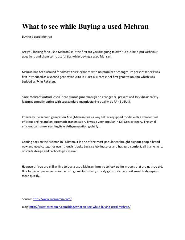 Blog: http://www.carzaamin.com/blog/what-to-see-while-buying-used-mehran/