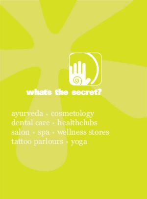 whats the secret? ayurveda * cosmetology dental care * healthclubs salon * spa * wellness stores tattoo parlours * yoga