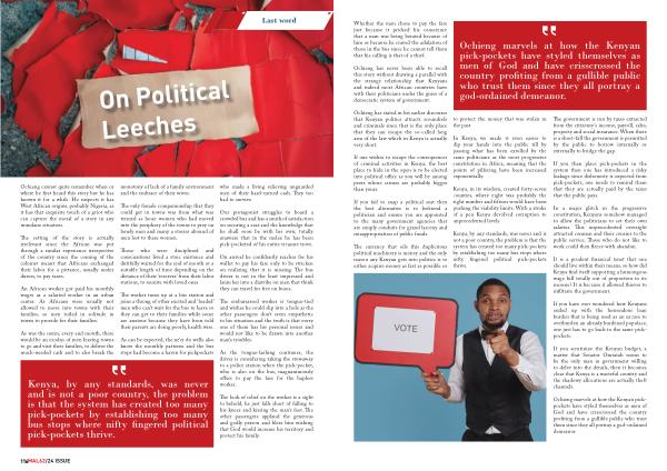 Ochieng has stated in his earlier discourse that Kenyan politics attracts scoundrels and criminals since that is the only place that they can escape the so-called long arm of the law which in Kenya is actually very short .