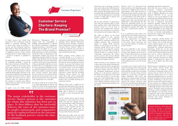 Brand promises encapsulated in customer service charters provide brands with the opportunity to entrench a culture of focusing on delivering results for the customer and not only for the brand . It shifts the mindset from one of a navel gazing inward looking vision , to one that is anchored on holistic customer experience excellence . Publishing a customer service charter is a brave and courageous thing to do and customers are looking for brands that can stand up to be counted in the race to effectively ‘ put their money where their mouth is ’. The public sector currently runs with this as a matter of obligation and the main challenge is to move from coercion to inspiration , and for other independent brands take up the mantle and not only transform from charter developers to successful implementers .