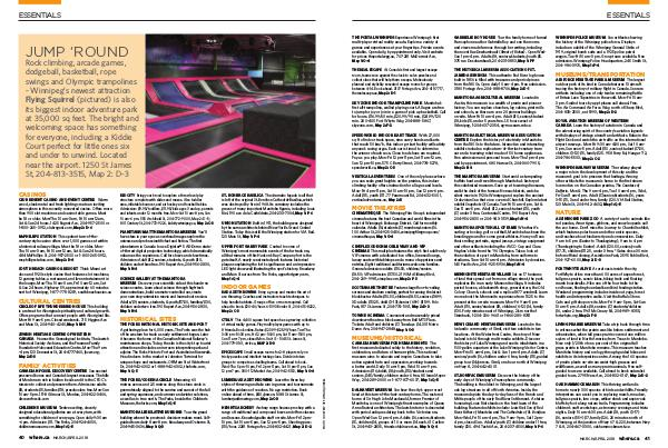 VERTICAL ADVENTURES one of the only places where you can scale great heights on the prairies, this indoor climbing facility offers instruction for all ages and levels. Mon-fri 4 pm-11 pm, sat 10 am-10 pm, sun 12 pm-6 pm. Adult $ 15, youth $ 11. 77 Paramount rd, 204-632-5001, verticaladventures. ca, Map 2: B