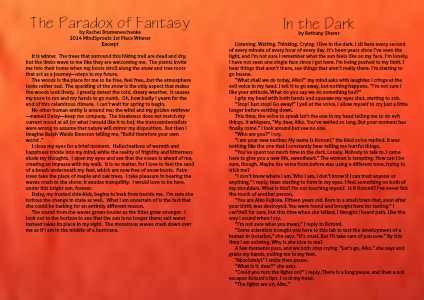 The woods is the place for me to be free, feel free...but the atmosphere looks rather sad. The sparkling of the snow is the only aspect that makes the woods look lively. I greatly detest the cold, dreary weather. It causes my nose to run and my hands to go numb. Oh, how badly I yearn for the end of this calamitous climate. I can’t wait for spring to begin.