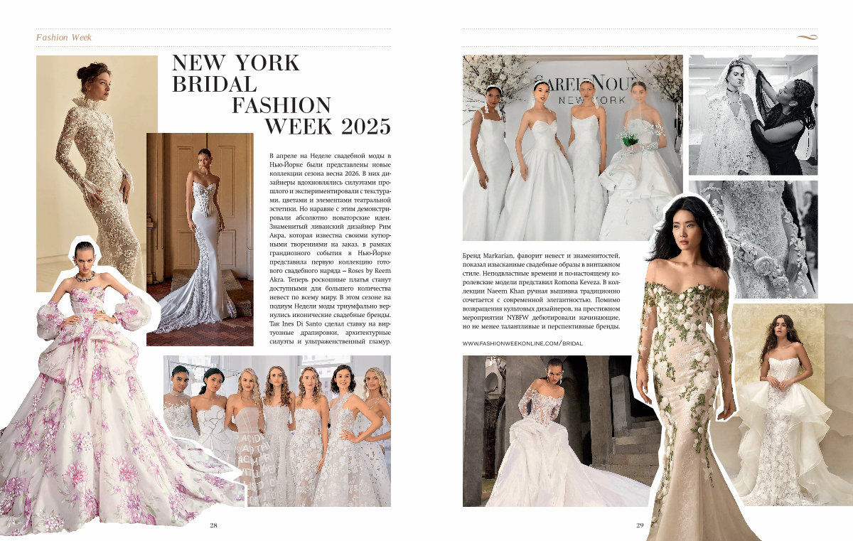 Бренд Markarian, фаворит невест и знаменитостей, показал изысканные свадебные образы в винтажном стиле. Неподвластные времени и по-настоящему королевские модели представил Romona Keveza. В коллекции Naeem Khan ручная вышивка традиционно сочетается с современной элегантностью. Помимо возвращения культовых дизайнеров, на престижном мероприятии NYBFW дебютировали начинающие, но не менее талантливые и перспективные бренды.
