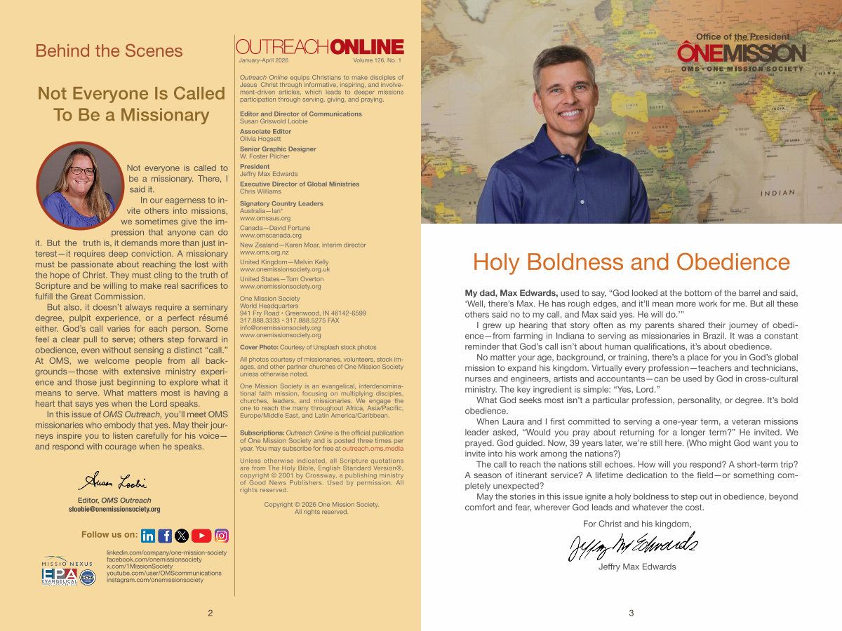 In this issue of OMS Outreach, you’ ll meet OMS missionaries who embody that yes. May their journeys inspire you to listen carefully for his voice— and respond with courage when he speaks.
