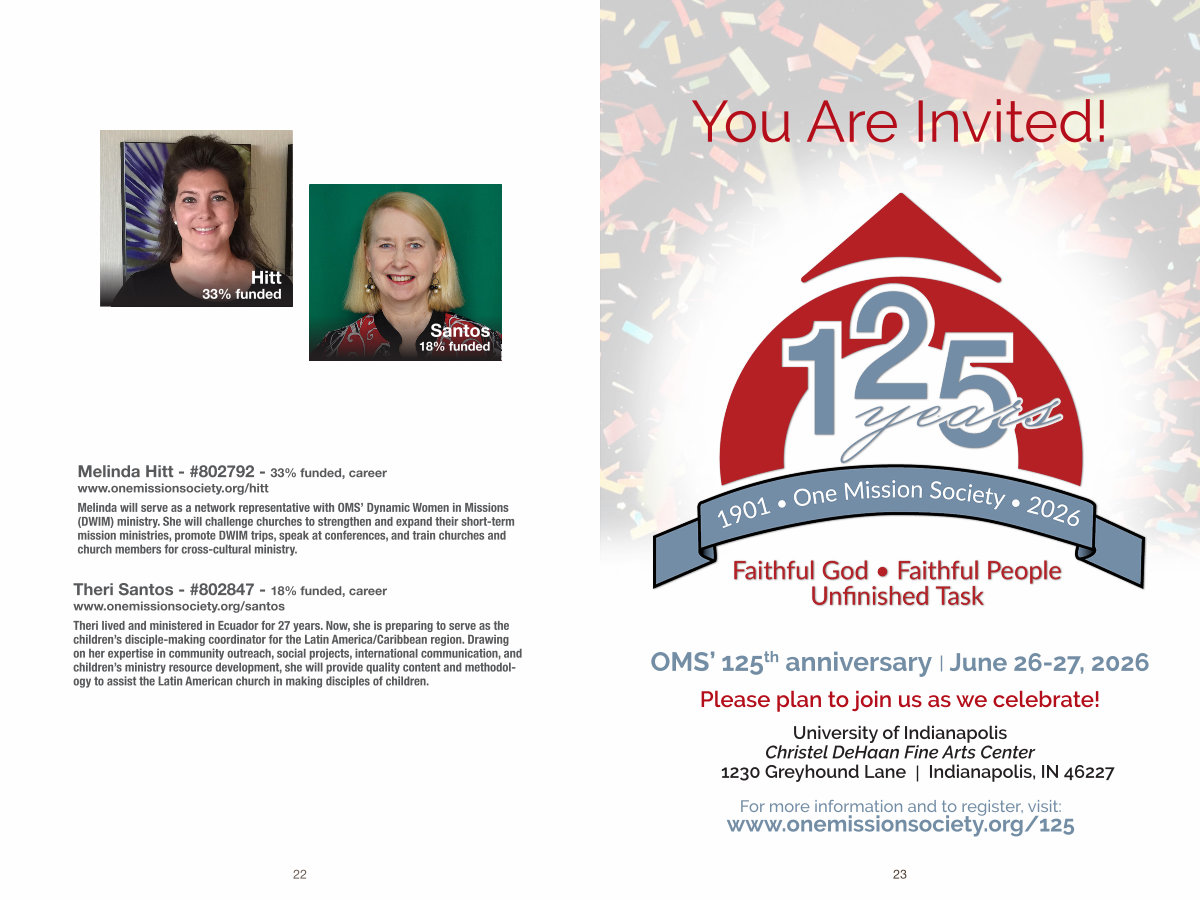 Melinda will serve as a network representative with OMS’ Dynamic Women in Missions( DWIM) ministry. She will challenge churches to strengthen and expand their short-term mission ministries, promote DWIM trips, speak at conferences, and train churches and church members for cross-cultural ministry.