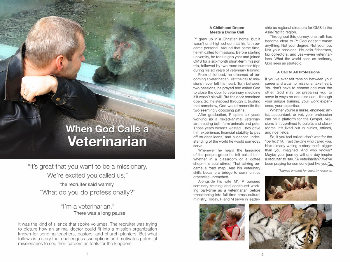 From childhood, he dreamed of becoming a veterinarian. Yet the call to missions never left his heart. Torn between two passions, he prayed and asked God to close the door to veterinary medicine if it wasn’ t his will. But the door remained open. So, he stepped through it, trusting that somehow, God would reconcile the two seemingly opposing paths.