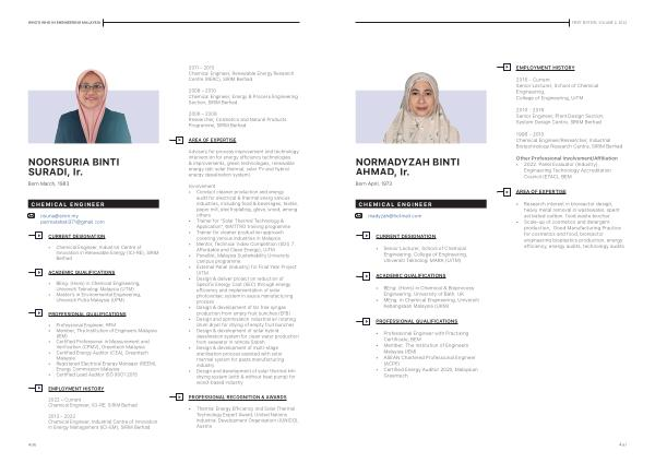 • Chemical Engineer , Industrial Centre of Innovation in Renewable Energy ( ICI-RE ), SIRIM Berhad