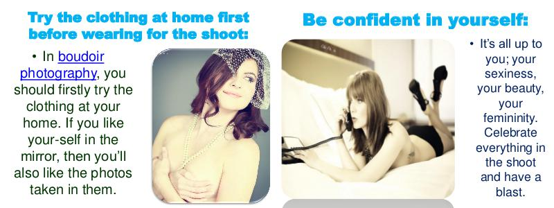 Be confident in yourself: • It’s all up to you; your sexiness, your beauty, your femininity. Celebrate everything in the shoot and have a blast.