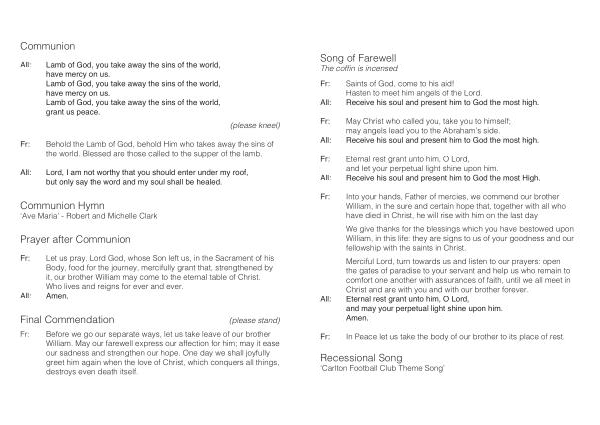 Fr : In Peace let us take the body of our brother to its place of rest .