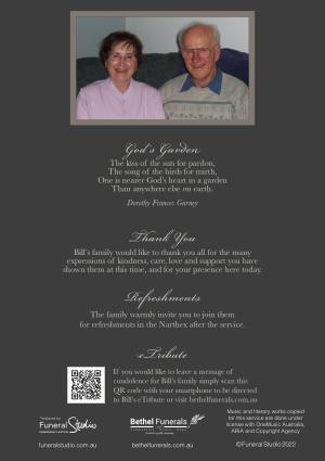 If you would like to leave a message of condolence for Bill ’ s family simply scan this QR code with your smartphone to be directed to Bill ’ s eTribute or visit bethelfunerals . com . au