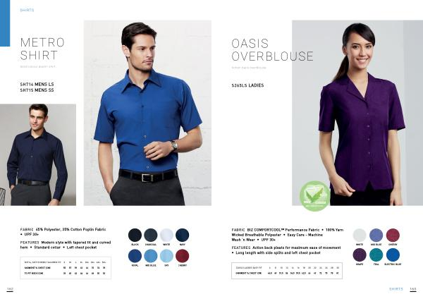 FEATURES Modern style with tapered fit and curved hem • Standard collar • Left chest pocket